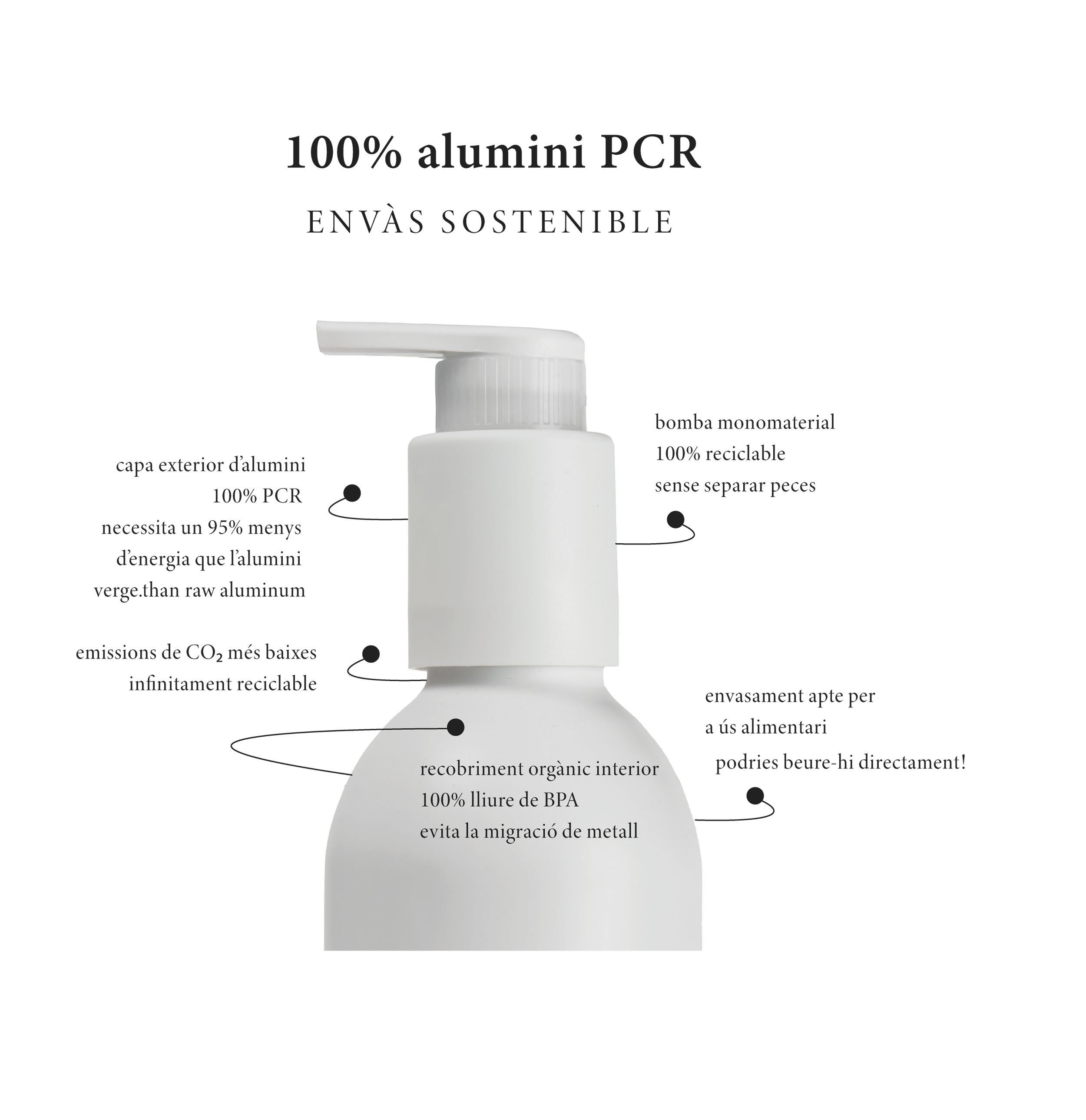 Flascons d’alumini reutilitzables, substituint els envasos d’un sol ús.